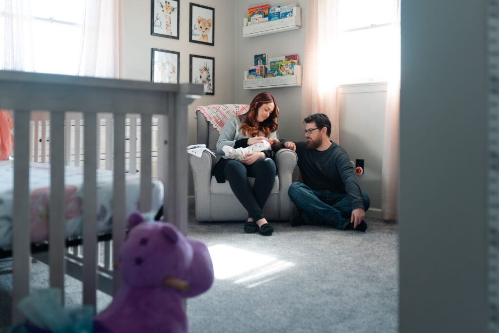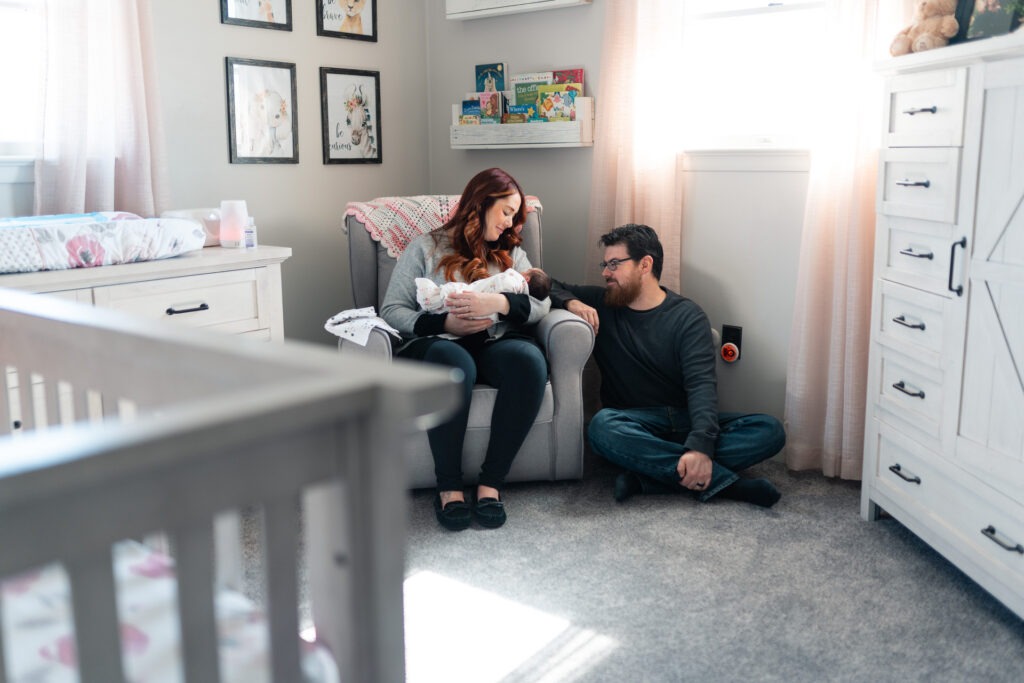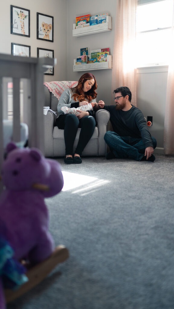 I am honored when clients choose to book their newborn sessions because they loved their maternity session. Newborn lifestyle sessions are becoming one of my favorites to shoot even though the sessions last a few hours the clients can relax and there is no rush to trying to get baby posed perfectly. Using her parents and her nursery are the best props anyway.